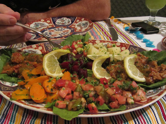 Someone surveying the Moroccan meal - Where to start? Hmmm.