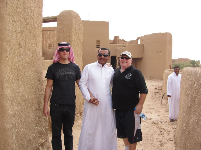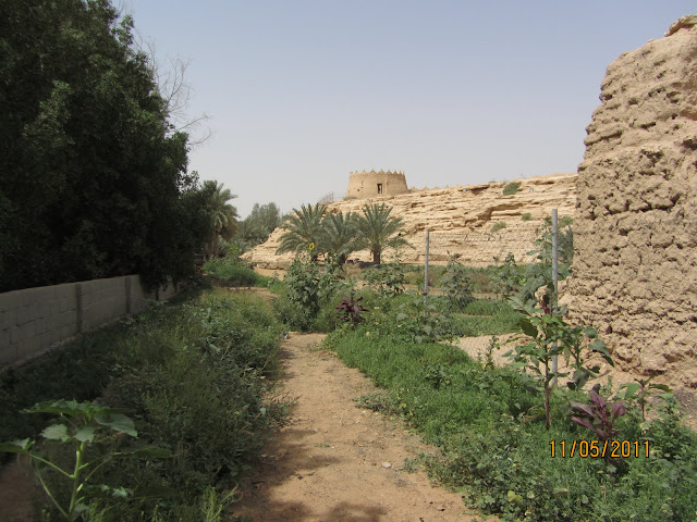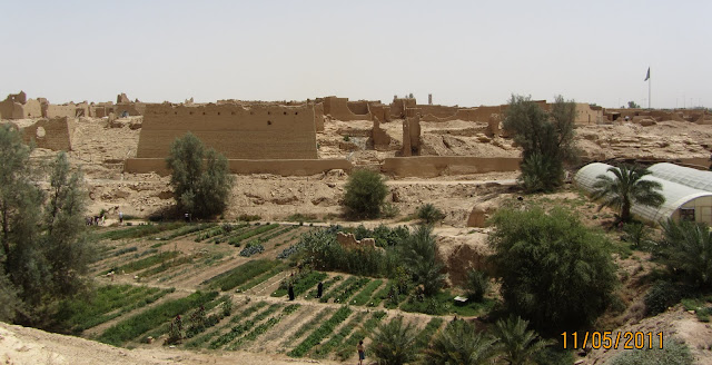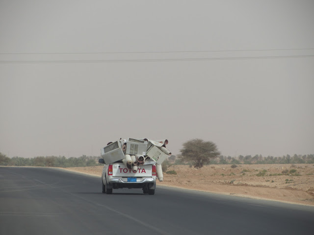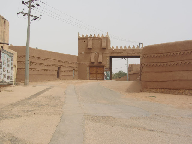 There’s some farmland on the way out…flat, green and gated, though all you can actually see from the road is the gate. To see the greenery you have to get out of the car and go look. I love how Saudi's use the desert sands to mark out paddocks. It's quite effective not only as boundary lines but to prevent people from seeing what's behind the desert wall as they drive by.