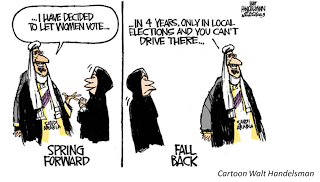 Not because this is bad news. It's great. Saudi Women voting in municipal elections and Saudi Women on the Shoura Council. Awesome.