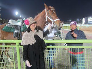 The area around the winners circle is where you can meet a few of the horse racing hierarchy who are usually dressed for warmth in thick jackets, but my favorite are the guys in flowing golden capes.  Why flowing golden capes?  They look good.  And they're probably very warm.