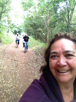 Mid-morning the next day we headed off to Karura Forest. I was determined to get some cycling in. Hubster and Mr Finland were a little nervous about that idea but I'd given the Friends of Karura a call and they confirmed cycling was possible, so cycling we were a-going. Anthony came too. He decided he may as well get n some extra training for his future as a Nairobi tour guide, a career path he decided would be quite lucrative after spending time driving us around.