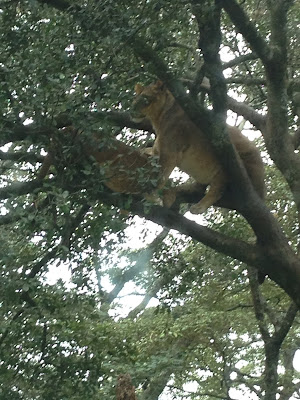 After our wildlife spotting ride and a dish of local lunch we decided to do the Safari Walk which is basically a walk round a Zoo like setting looking at animals that, after recovery from the orphanage (also housed in the park) cannot be put back into the wild, and met a very friendly security man, complete with automatic rifle, who told us to slow down our walk because we were missing so much. To drive home his point, he asked if we'd seen the lions in the tree.