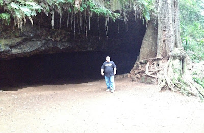 We discovered there are two fees to pay for cycling, one at the entrance to the forest for the pleasure of entering and another at the bike hire stand, for the bikes. There was a little confusion initially because this hadn't been explained during the phone call or at the gate, and Jackson, the bike guy, got the brunt of our 'What? Why do we have to pay twice?', indignation. But soon enough things were explained, apologies made (and accepted), cash handed over and soon we were off on a leisurely two hour cycle through the forest. The track was very easy and there were stops to see a waterfall and Mau Mau caves as well as the odd bit of wild life.