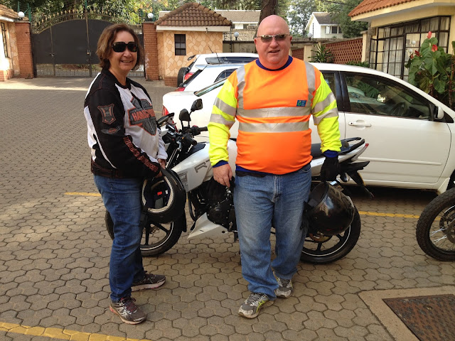 Mr Finland, bless his heart, decided that riding of motorbikes was a must, so he arranged a rental bike for us. It was a 180cc bike (the best Mr Finland could find for motorcycle renting in Nairobi) and I have to say, we probably looked like a couple of elephants on a pimple riding the thing, and it did struggle a bit on the hills, but we loved it!