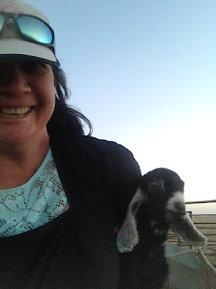 Once the invitation to his home was settled he called us over to the pens to meet his wife who was busy with the hired help, a young bloke from India, attaching baby goats to adult females that were tied to the pen fencing so they couldn't argue with the fact they were there to feed. (On closer inspection I decided these were goats).